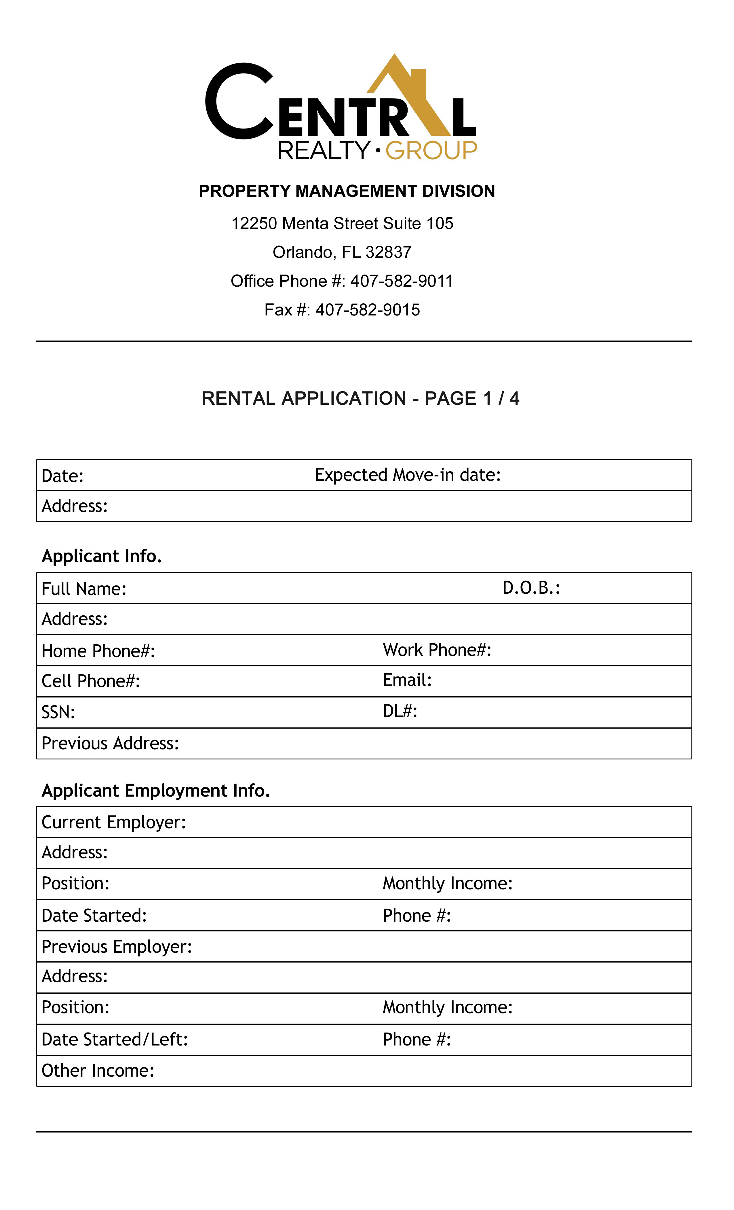 | R E N T A L A P P L I C A T I O N F O R M |